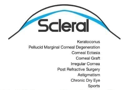 Scleral contact lenses correct vision problems from Astigmatism, Far or Nearsightedness, Keratoconus, after vision surgery like Lasik or RK, Fuchs Dystrophy, Pellucid Degeneration and Cornea scars. Bifocal designs are done here, too.